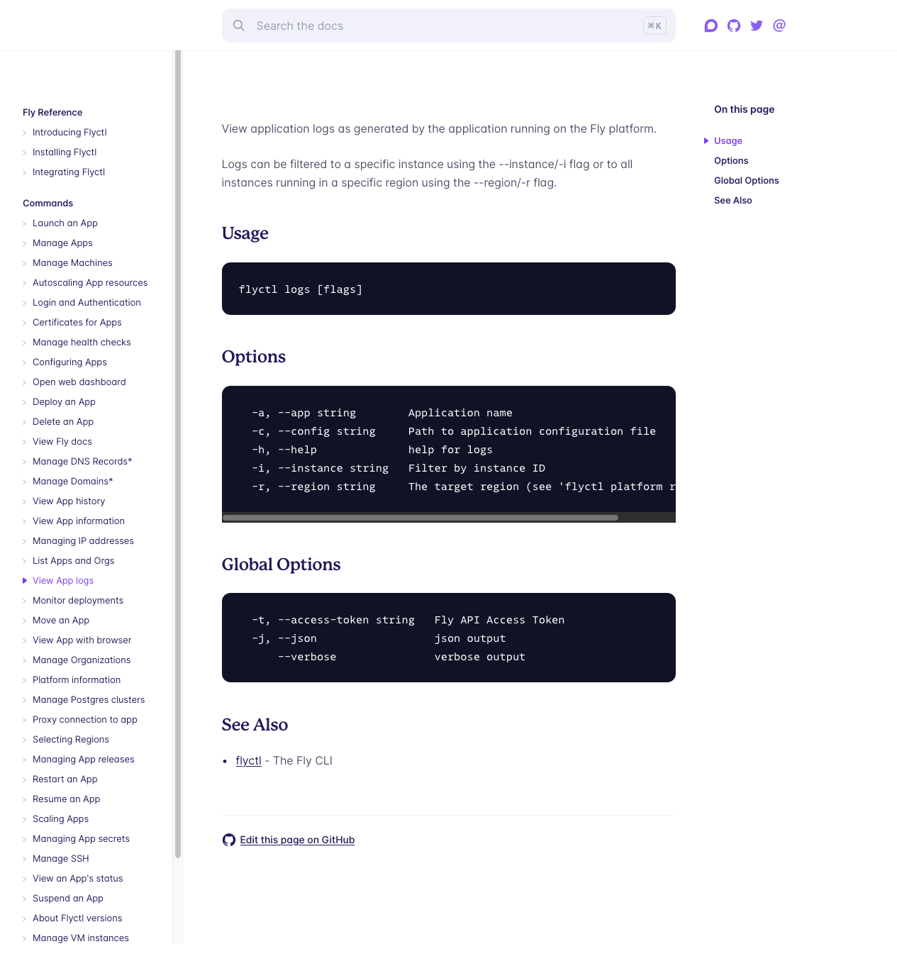 If you read the flyctl logs docs: https://fly.io/docs/flyctl/logs they are basic - at the time of writing ...