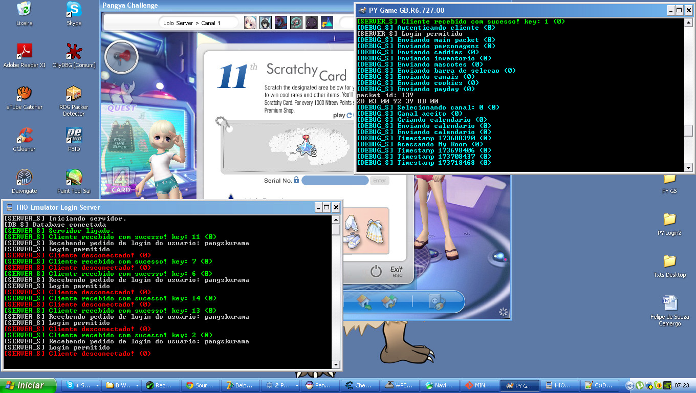 HIO Emulator é um servidor para PangYa desenvolvido em PASCAL e compilado em Delphi 7, originalmente criado e iniciado por Kurama(Felipe de Souza Camargo) e distrubuido como código aberto no dia 03/03/2014, ao compartilhar o código, favor manter os créditos, e no caso de modificações ou compartilhamento de suas modificações no projeto. Favor contactar o Administrador do projeto no fórum: http://hiocheats.net para ter acesso ao projeto.