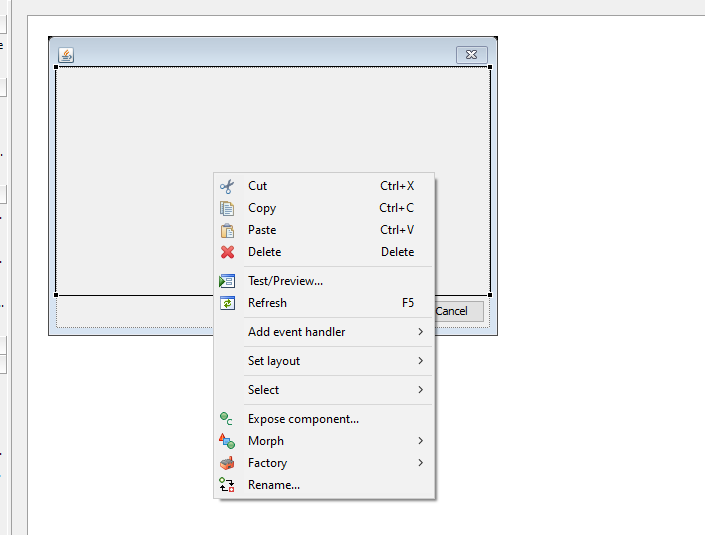 a limited context menu is displayed as part of the windowbuilder Basic UI preference Updated copyright Rebased onto latest master