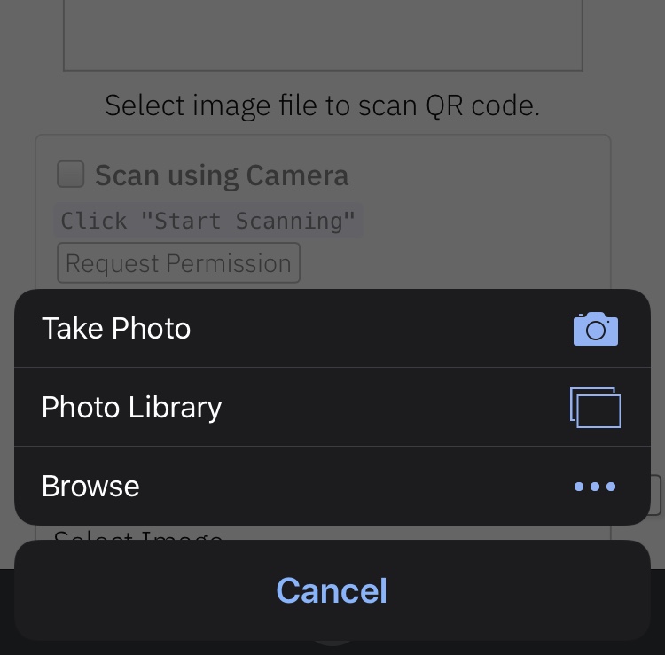 Support for scanning local files on the device is a new addition and helpful for the web browser which does not support inline web-camera access in smartphones. Note: This doesn't upload files to any server — everything is done locally.