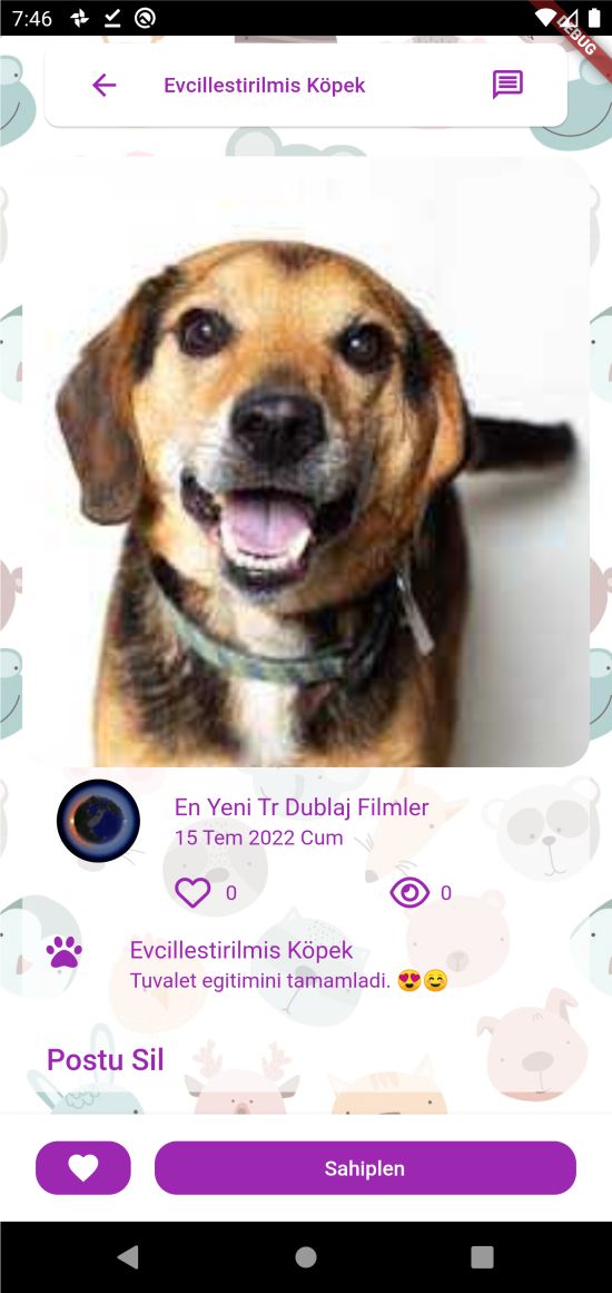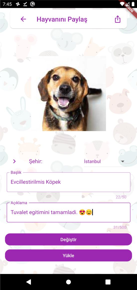 Bu projemde hayvanların (Evcil) sokağa atılması ve sahipsiz kalınmaması adına bir fikir üreterek hayvanların bir fotoğrafları çekilerek herkese açık bir şekilde yayınlanması ve beğenen kişilerinde yayınlayan kişiler ile iletişime geçerek hayvanları sahiplenmelerini sağladım.