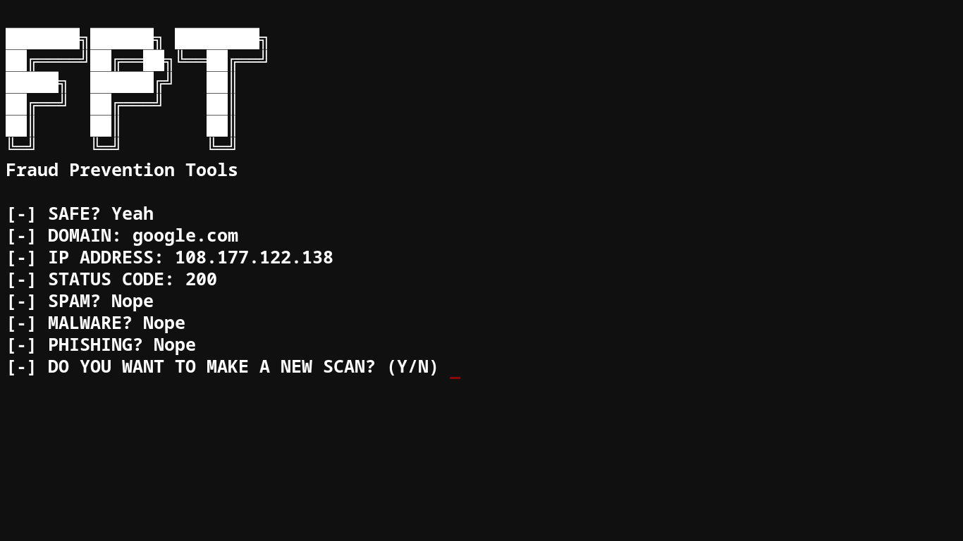 FPT or Fraud Prevention Tools It is a set of essential tools to prevent fraud and information gathering. You can analyze data like, email, phone number, url and IP addresses. The tool is still in the testing phase and intends to be further improved. If you made it this far, don't forget to leave your star ( β ) so that more people can get here. You can see more at: https://replit.com/@CollenMenezes/FPT