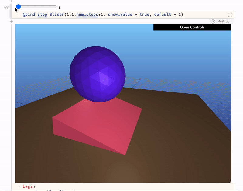 just notebook # start server (try opening examples/cube.jl)To unit tests specified in the test/ folder, use the command: