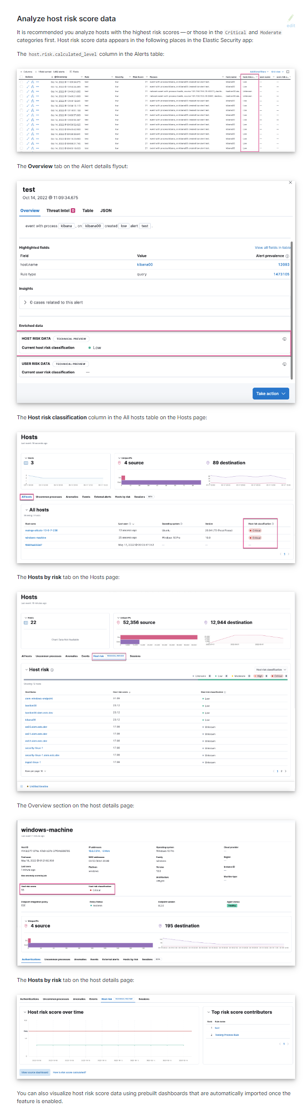 - Compare details under Analyze host risk score data and Analyze user risk score data section