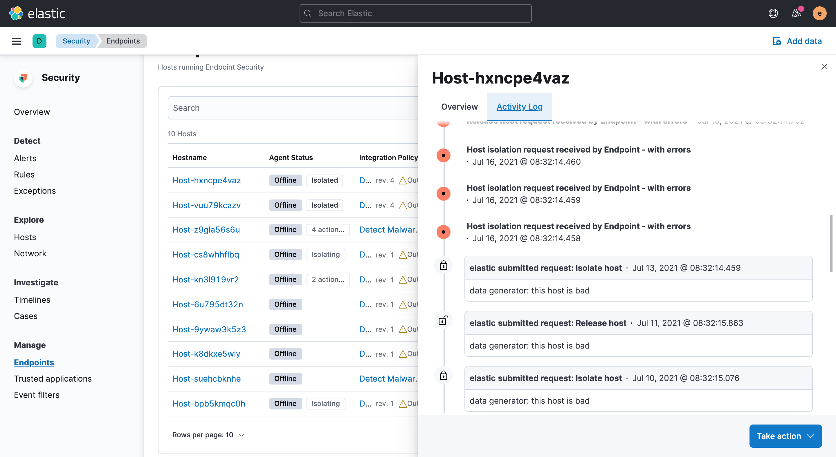 We want to be able to disconnect/isolate hosts running the endpoint integration from the network so that adversaries are unable to move laterally and infect other hosts/systems. Isolated Hosts are only able to communicate with kibana/ES until it is released.