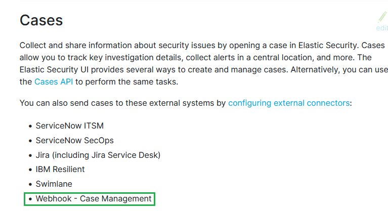 I've commented out the link to the new Kibana reference topic for the Webhook connector since the PR for those docs ([Security Solution] Webhook - Case Management Connector Documentation kibana#137726) hasn't been merged yet. Once the PR is merged, I'll uncomment the reference.Previews: