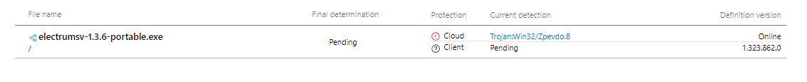 Portable v1.3.6 is getting flagged as Trojan:Win32/Zpevdo.B by Windows Defender right after downloading it through a browser
