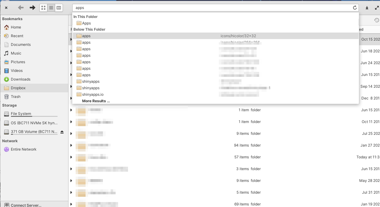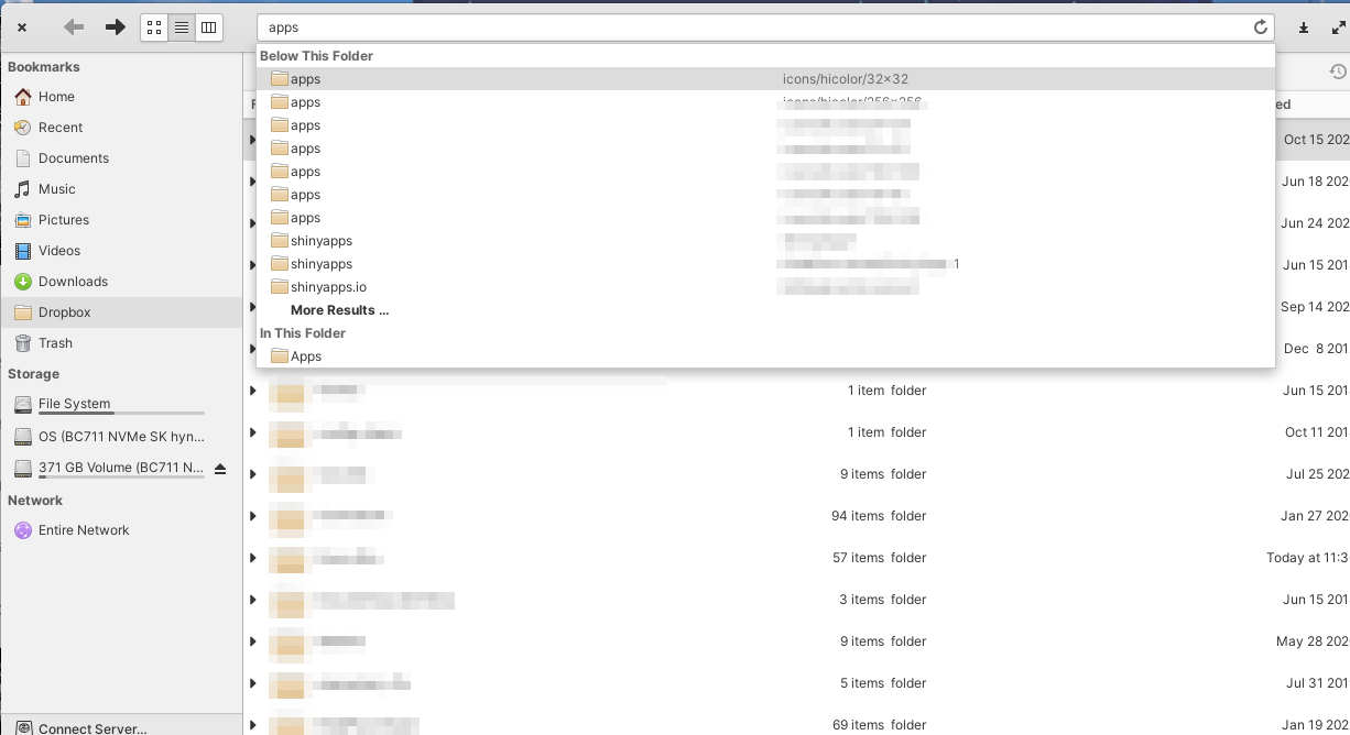 In search results, files and folders "Below this folder" are shown before results "in this folder", which are likely more relevant. This, combined with the lack of rollover forces the user to press "Down" multiple times to get to the more relevant results. Even the "More Results..." button is more easily accessible with a keyboard.