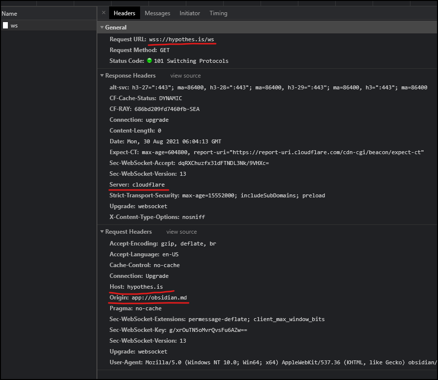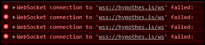 So, technically, some calls to hypothes.is are attempted, but they don't do anything. Before the iframe patch is applied, it tries to connect to the real hypothes.is website. That request is cancelled as soon as the patch is applied though. The errors you screenshot above are from the websocket API. |