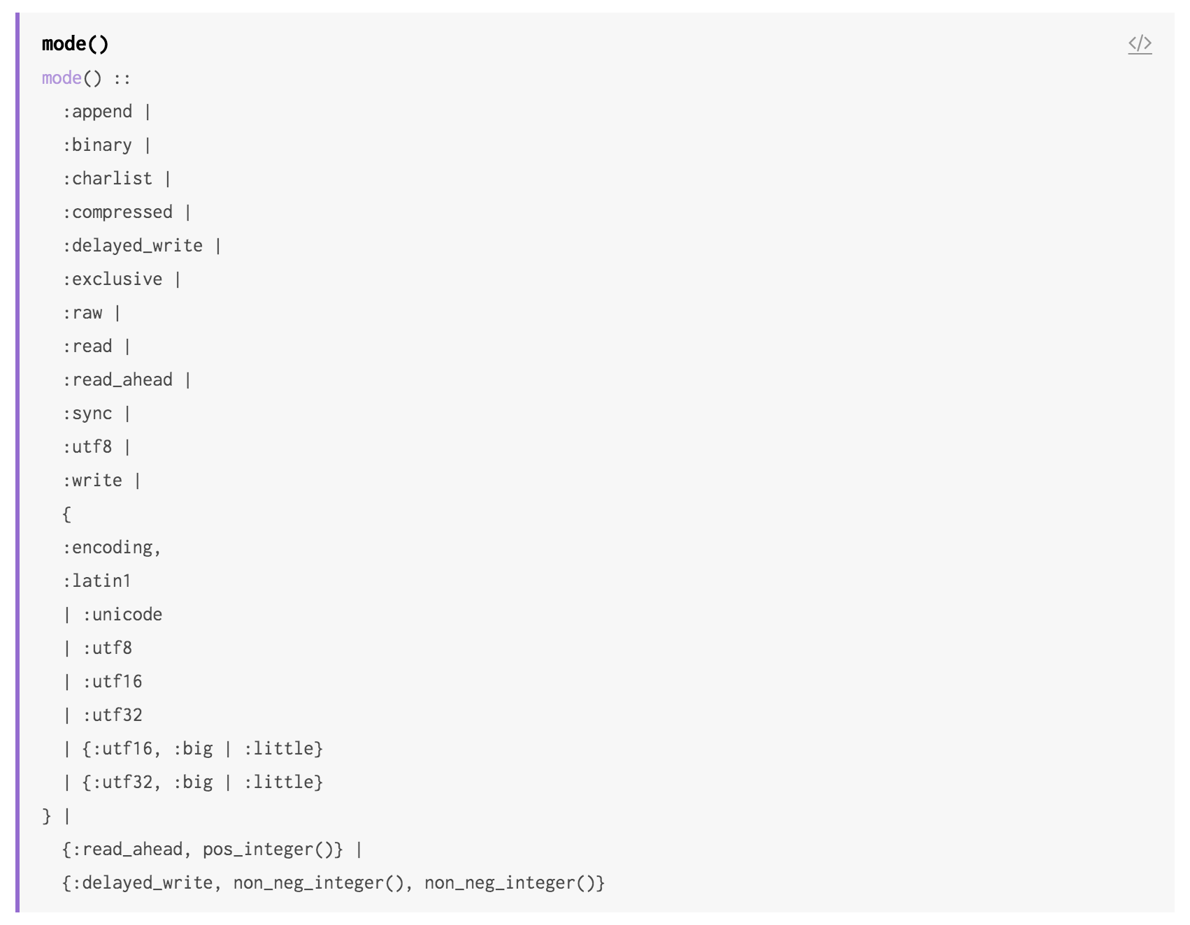 I did some random testing on Ecto & Elixir codebases and looks pretty good, the only minor regression I've seen is so far is: before: (https://hexdocs.pm/elixir/master/File.html#t:mode/0) after: |