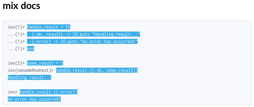 Don't allow selecting iex> in doctests #836