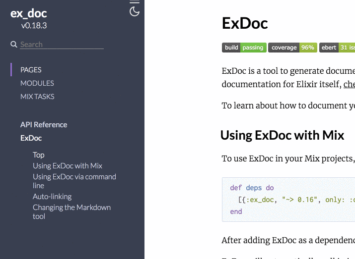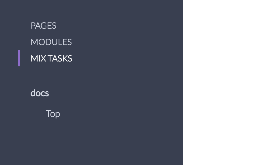 Hex docs show a "Top" sub header even if there are no other contents. As an example, go to the Phoenix Hex documentation, click Guides then Installation and you'll see something like: