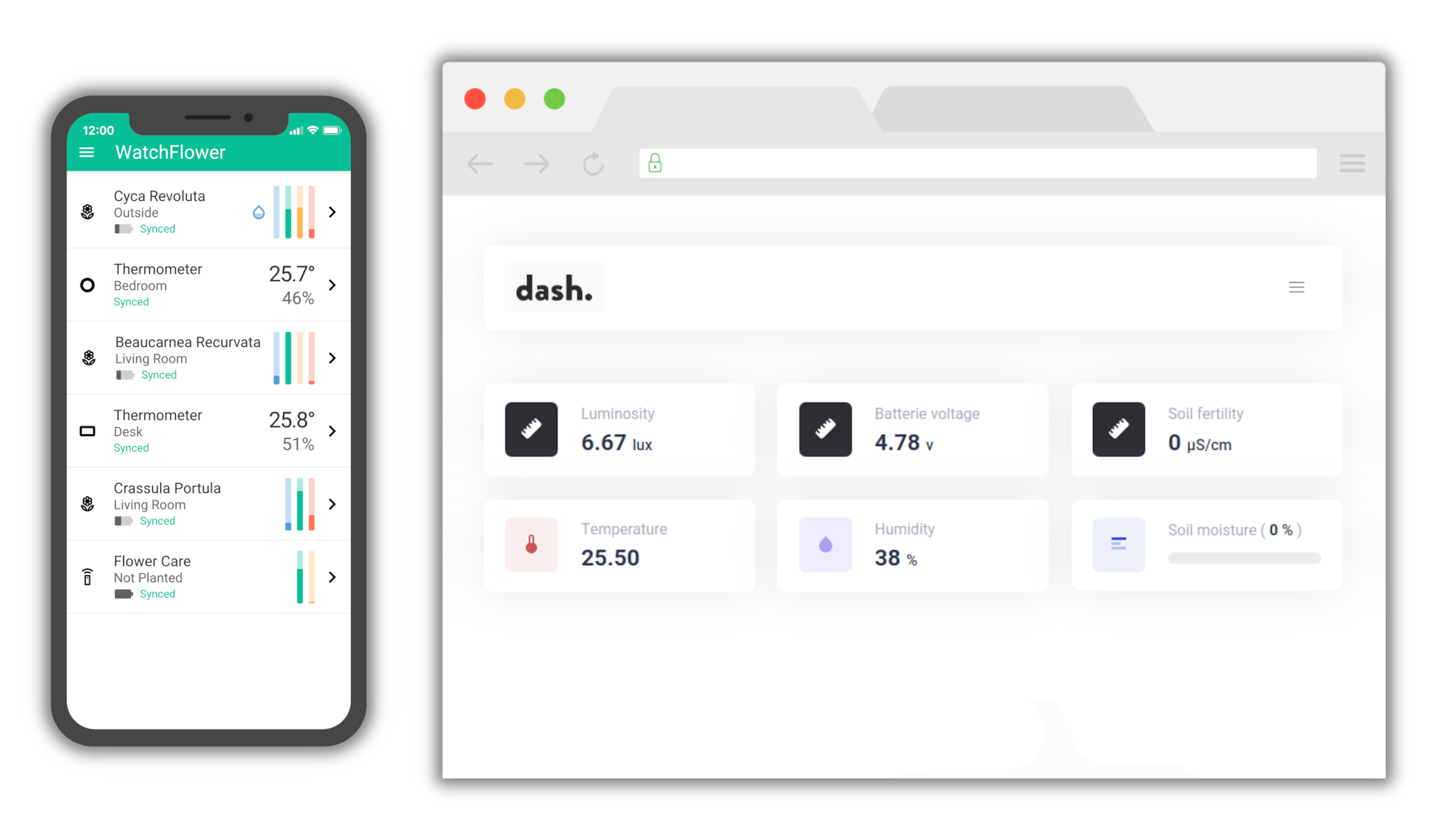These firmwares are providing both a WiFi web inteface and a documented BLE API to use with WatchFlower. They use standard libraries and are easy to customize to your own needs.