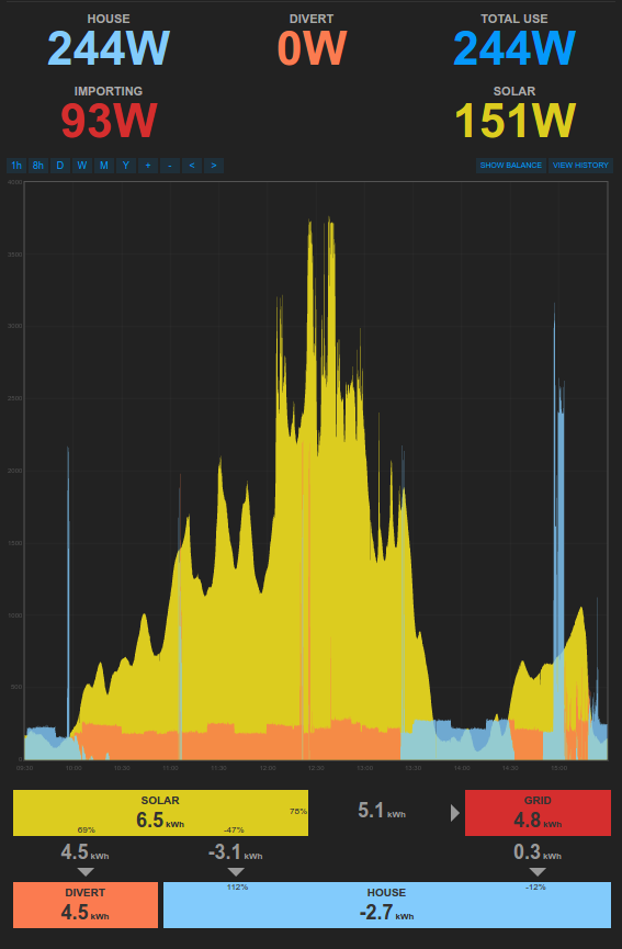 Note: The use feed needs to include house consumption and the divert (battery loading)