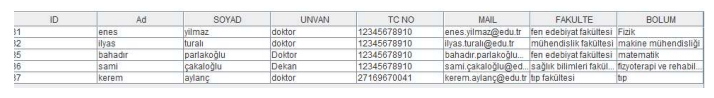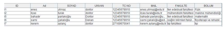 The information in the database is retrieved one by one with the relevant query, and an object is created using the previously created object, and this object is assigned to a list for later use.