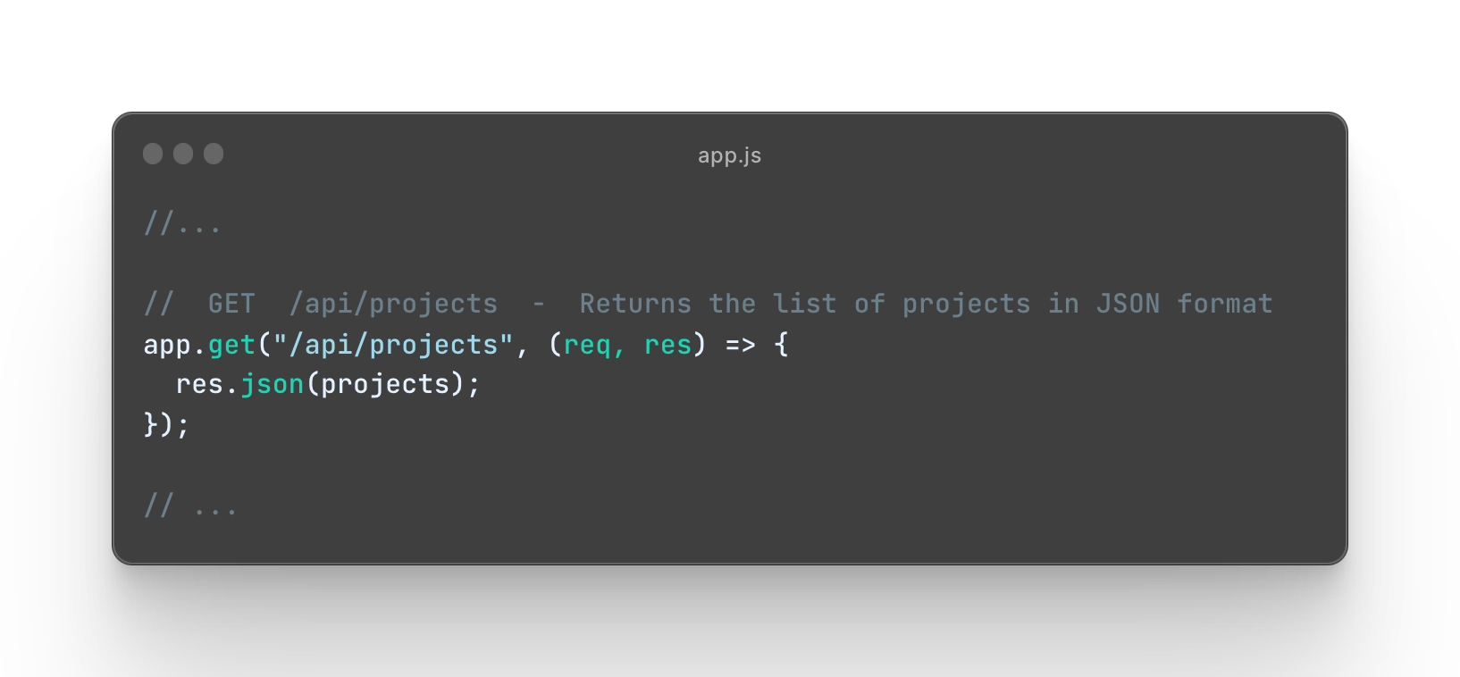 If you set up the route correctly, you should see the JSON data with projects sent in the response.