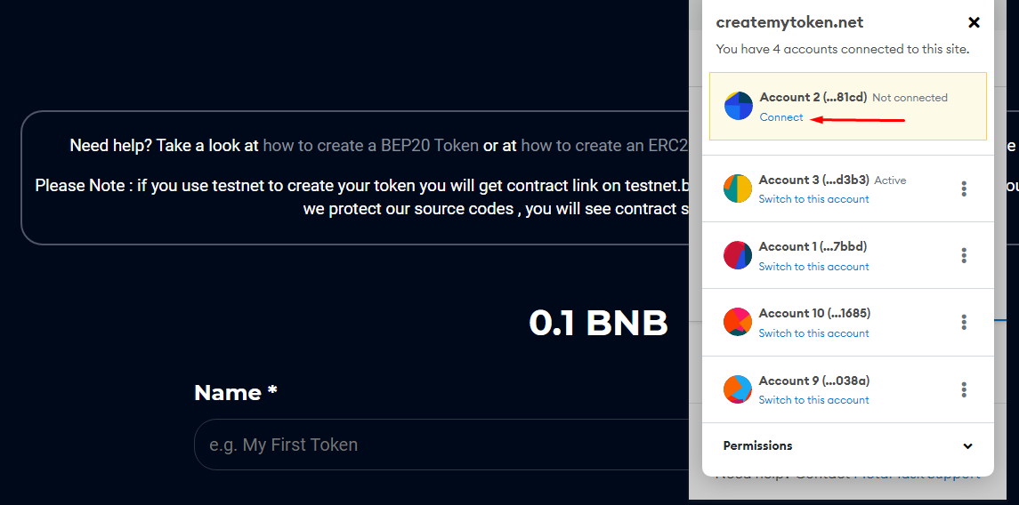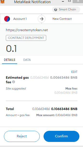 Below we demonstrate the creation of BEP20 Token in Chrome browser