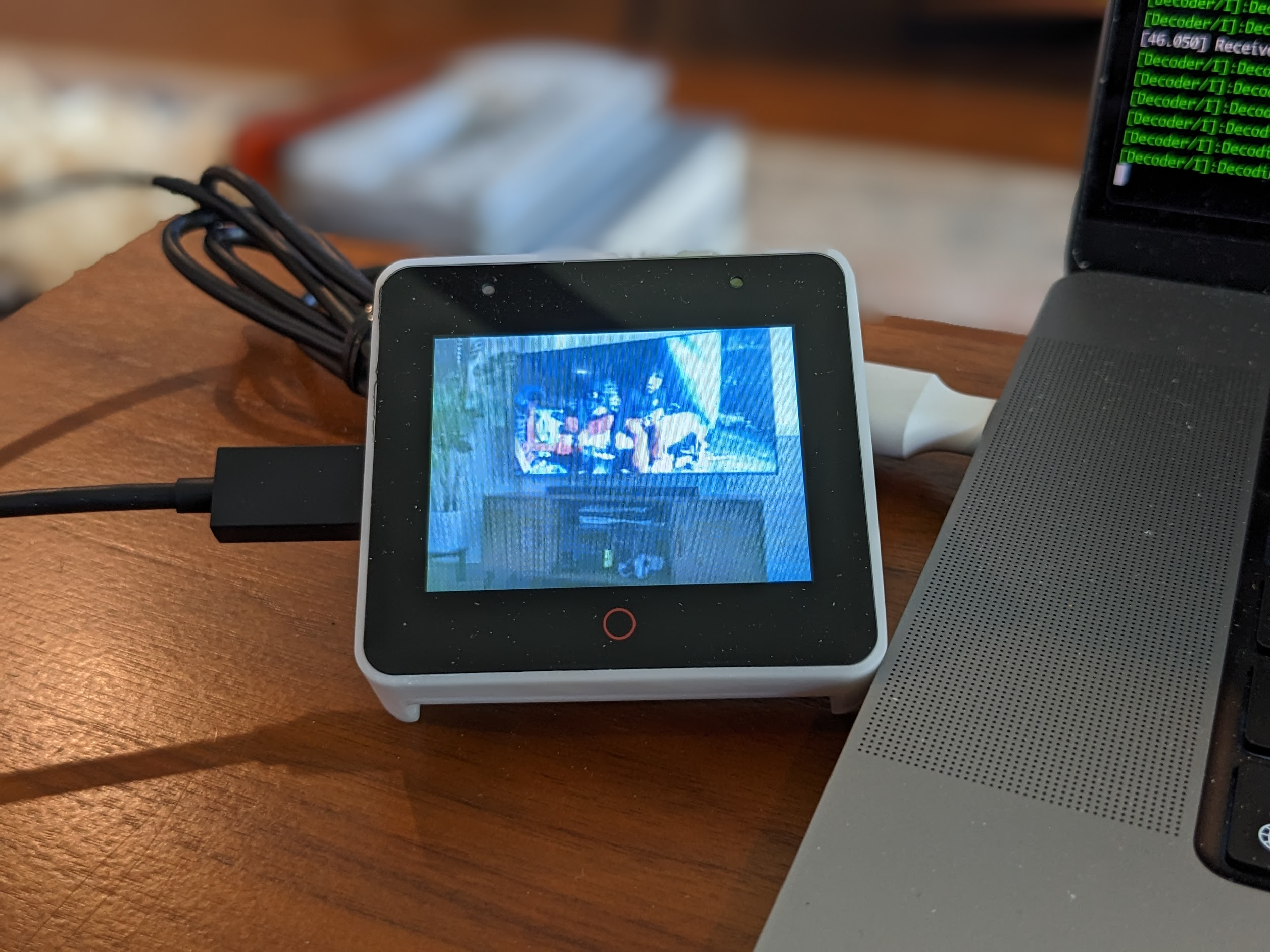 Running on the esp32-s3-box connected via wifi to the m5stack esp32 timer-cam (which is running the code from esp-cpp/camera-streamer#2)