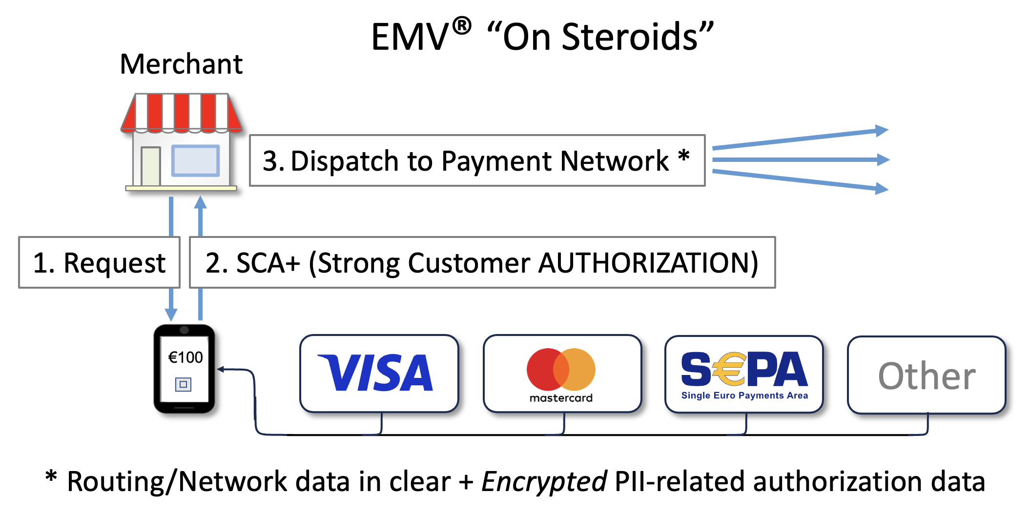 🔸 For privacy reasons user-specific authorization data is encrypted. This also removes the need for a Tokenization Service Provider (TSP).