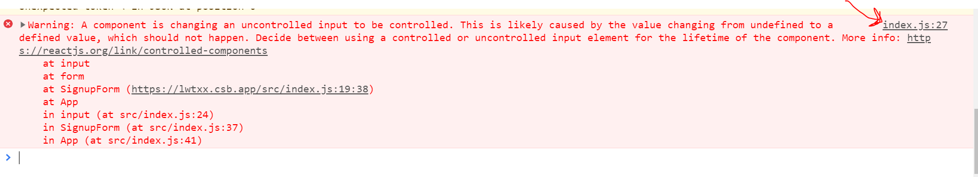 As you can see instead oferror('A component is changing...we haveconsole.error( 'A component is changing....