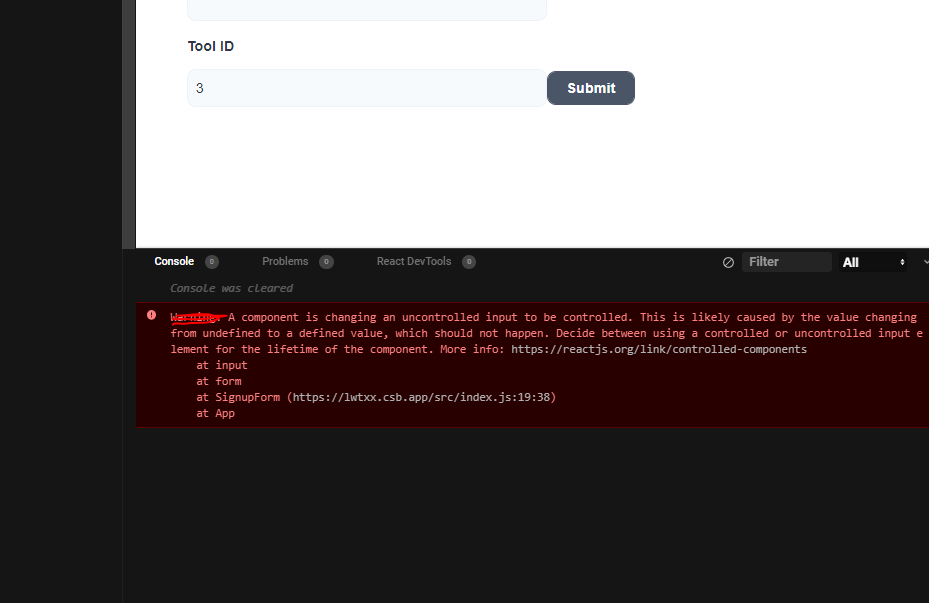 (the codesandboxe may freeze a little bit, try to reload the page) - Open the browser console (chrome in my case) and you will see