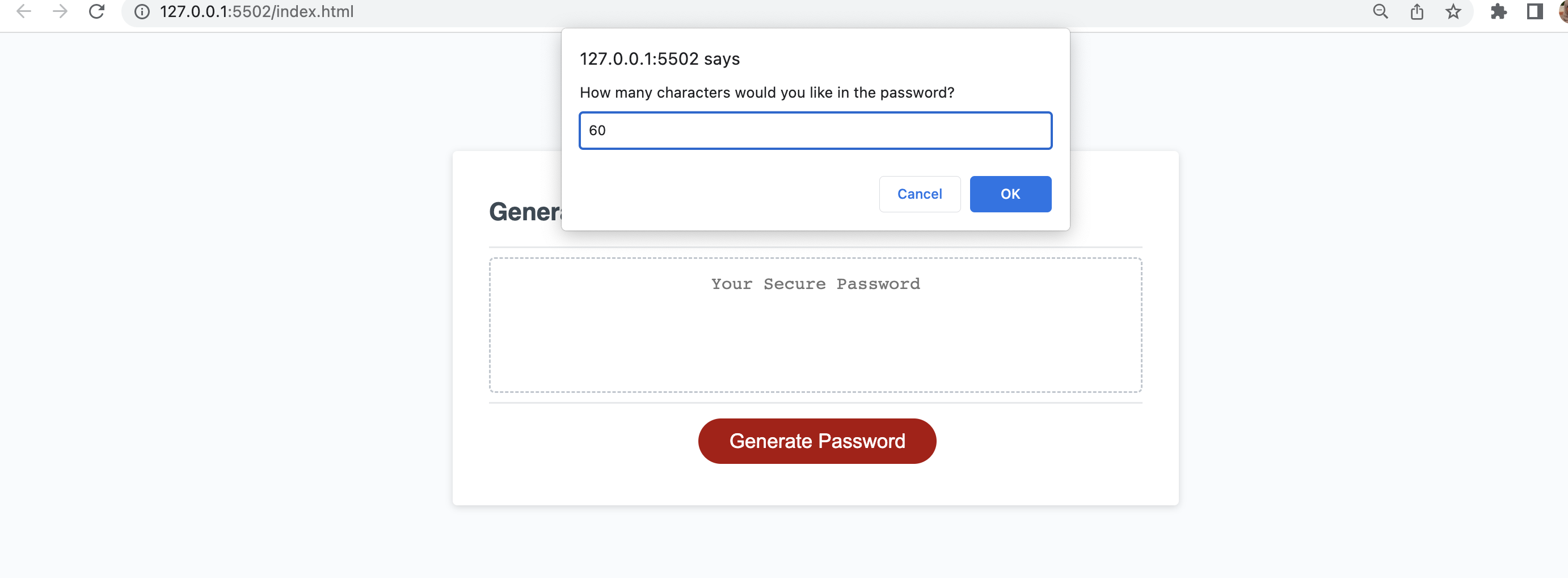 - Generate a password when the button is clicked
