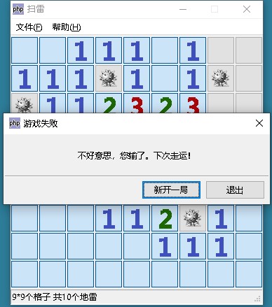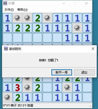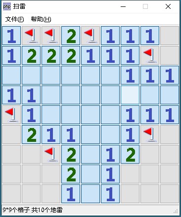 扫雷游戏 MineSweeper 听说PHP也可以开发GUI应用程序,所以了解了一下 PHP-GTK 并做了个简单的扫雷游戏。使用方法很简单,下载本程序并在Windows平台下运行根目录的 start.bat 即可开始游戏。以下是程序截图: