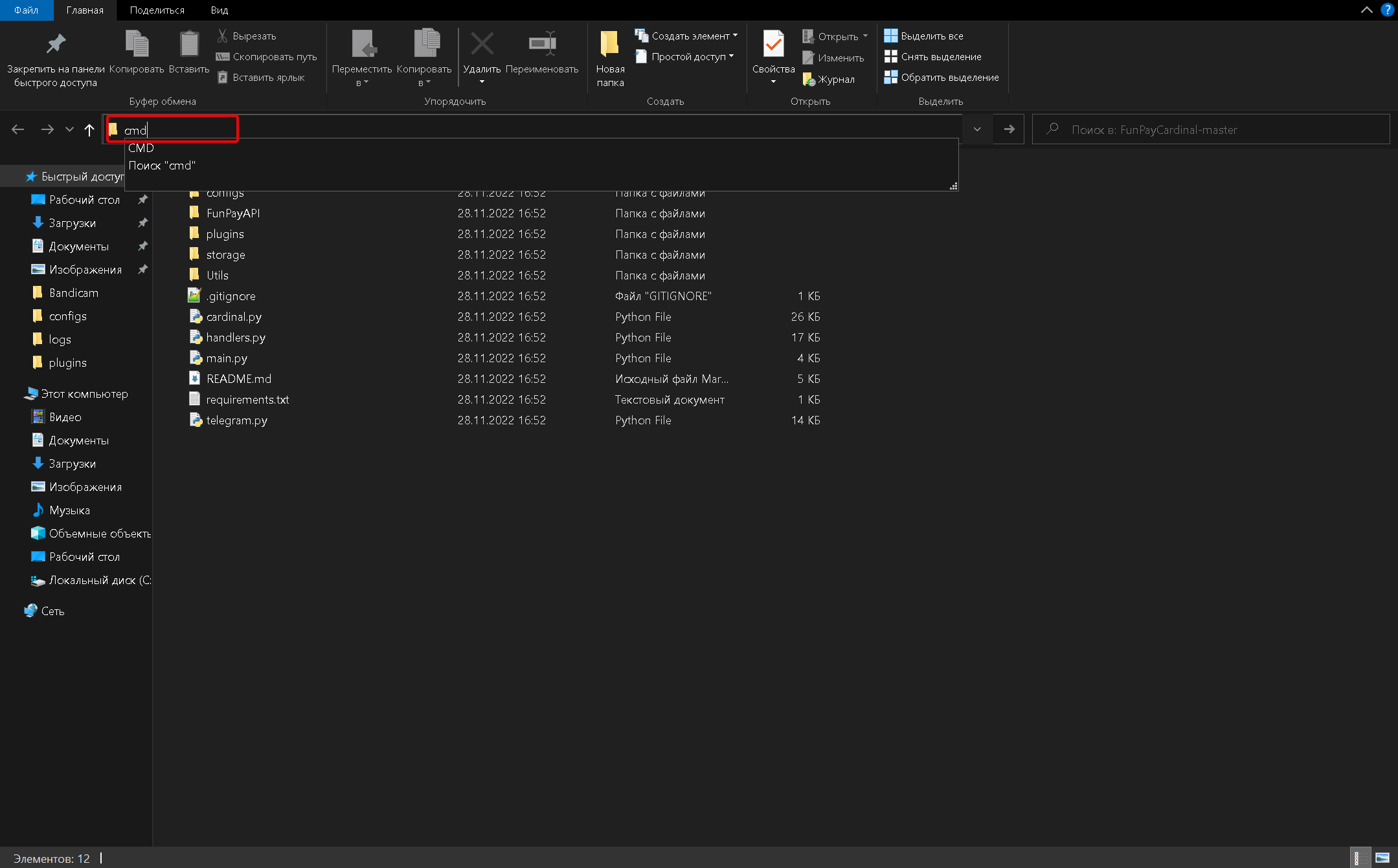 FunPayCardinal-main. - В адресной строке введите