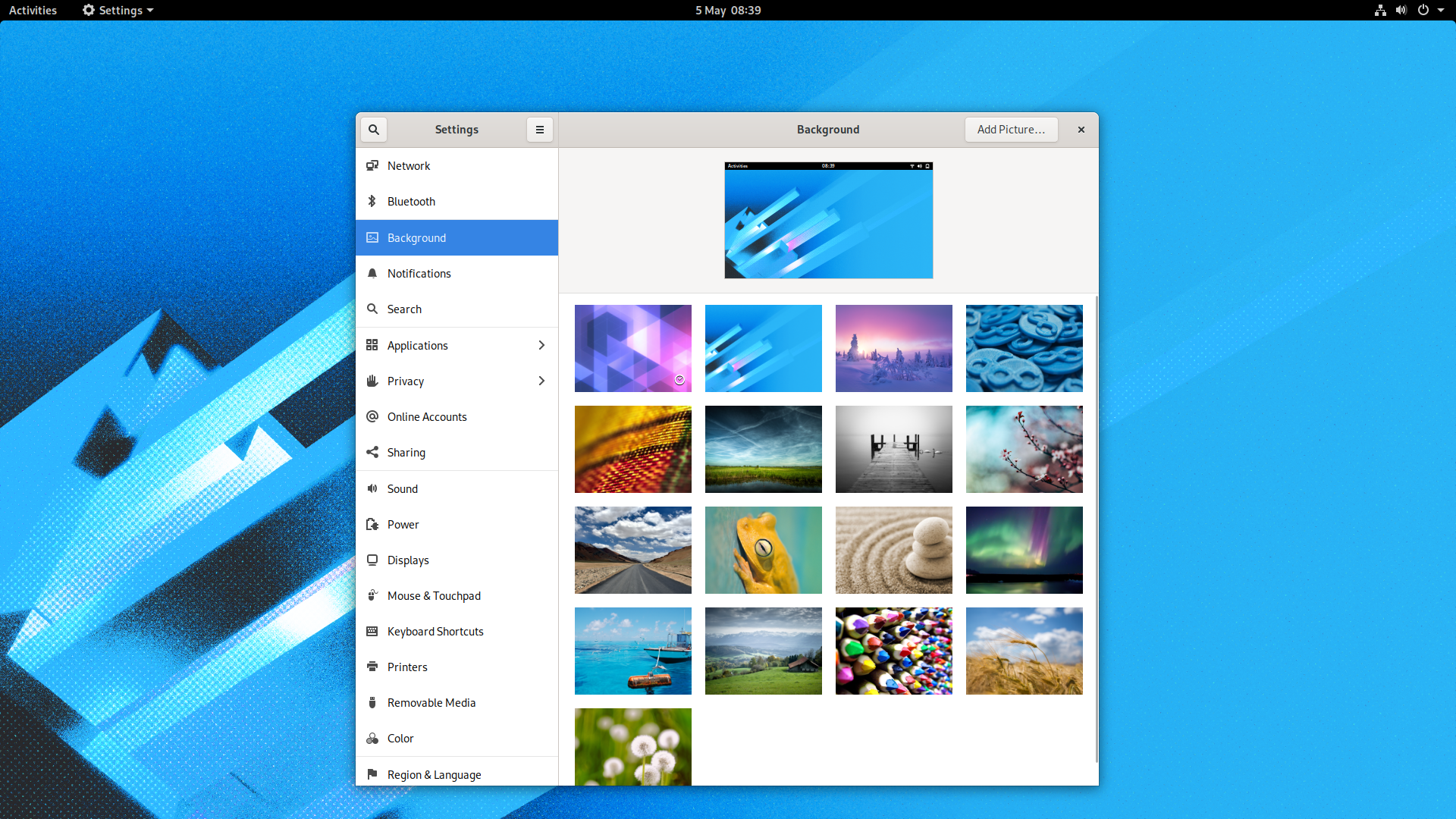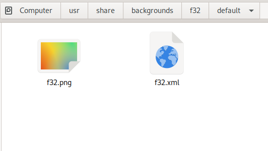 Hey @luyatshimbalanga, @areguera I am also having this issue, and here are the contents of my default backgrounds folder for f32: I've been having a peek at the repo, and what seems to be the default wallpaper is indeed not there in the 32.2 version. Let me know if you need some help to fix this . . . |