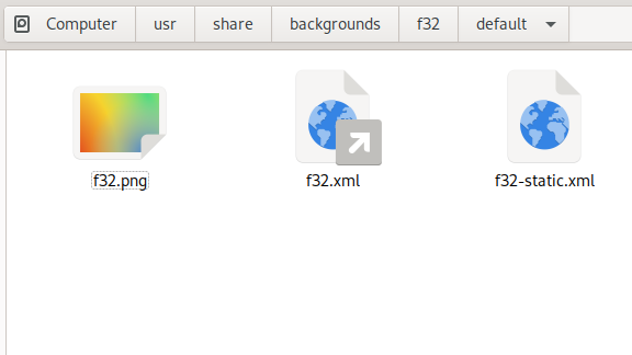 After updating to f32-backgrounds-32.1.4, the f32 default bg option disappeared from the selection grid. This is with GNOME de. If you select some other bg, then it's not possible to change back to the default f32 one, it's gone.
