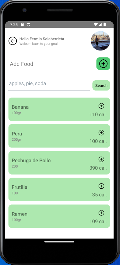 - Agrega los alimentos consumidos en el dia.