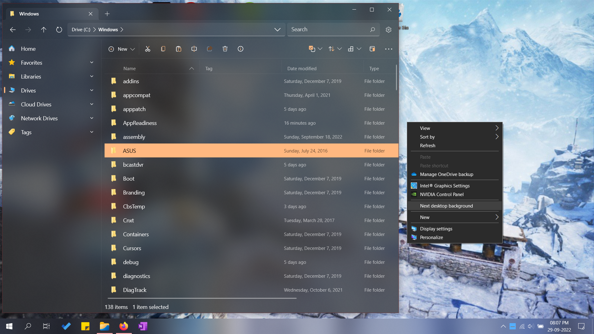 When files window is open and I right click on desktop to select 'Next Desktop Background', the Files app completely freezes.