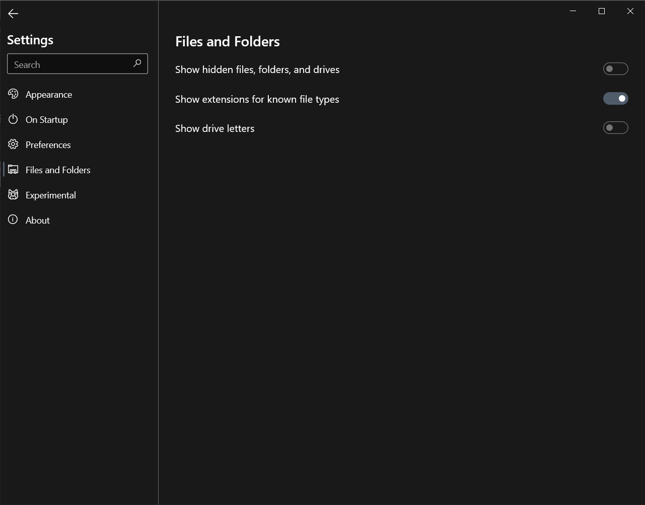 I wanted to enable the hidden files,folders and drive option in the settings but im not able to... im sure its not a bug but im not sure how to fix it. Is this option implemented in this preview? Thanks