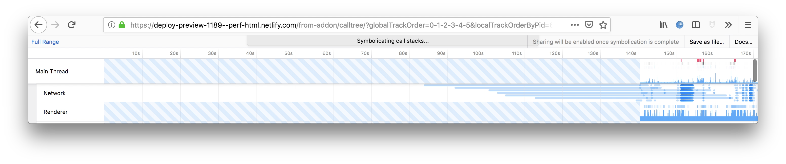@mstange: I can't reproduce this. I tried recording my screen, and then loading both from the add-on, viewing existing profiles, and committing new ranges. |