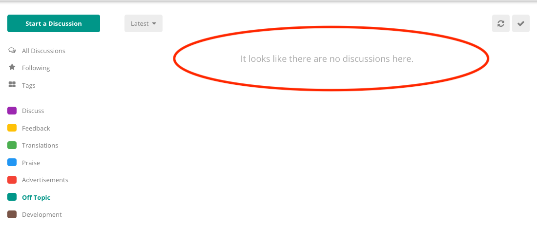 If nobody mentioned you so far, the mentions tab page will be shown blank instead of a information text that warns the user that he/she hasn't been mentioned so far like the "no discussions on this category" warning.