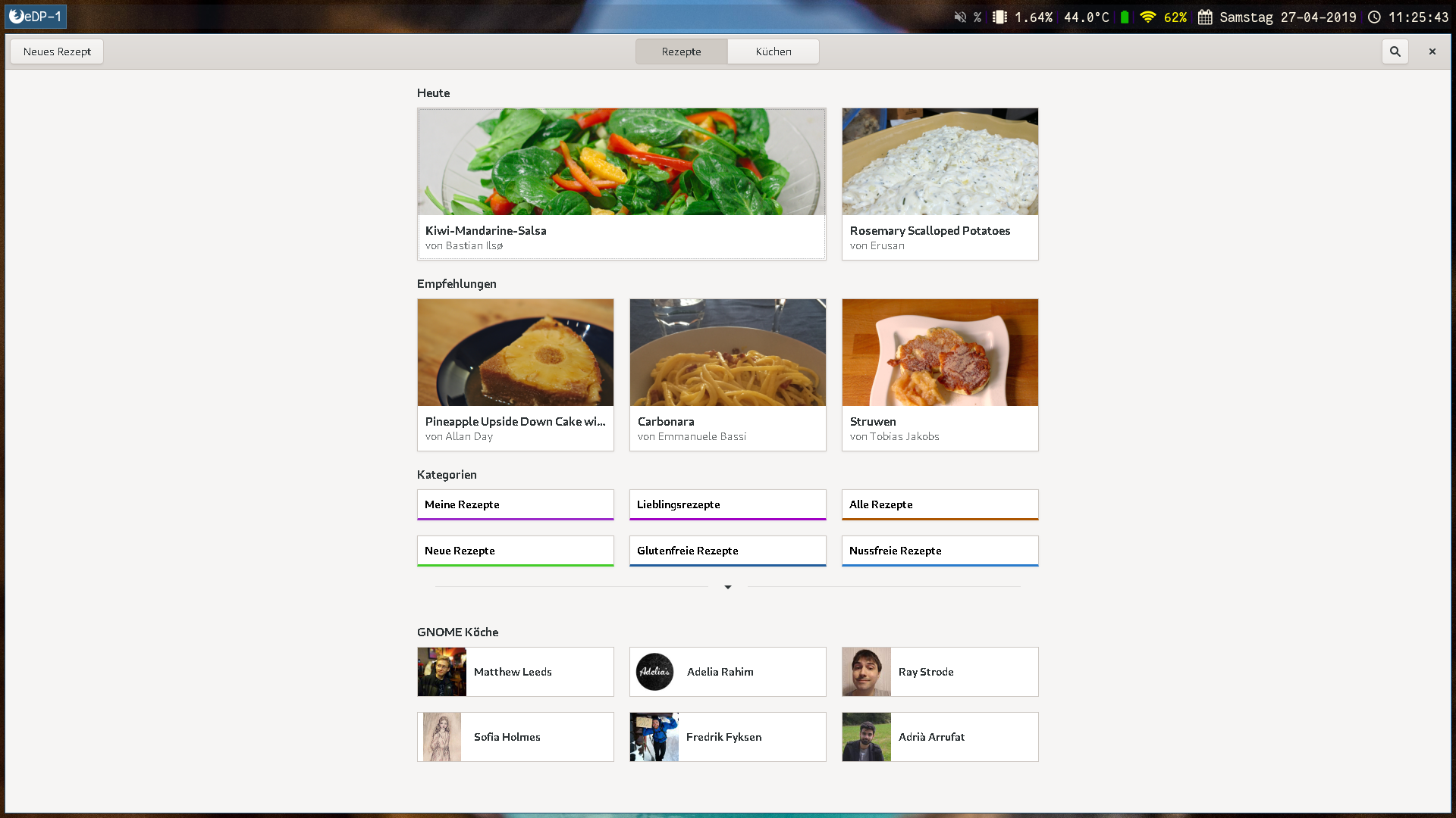 flatpak run --socket=wayland --env=GDK_BACKEND=wayland org.gnome.Recipesit looks like the following:I am using sway.