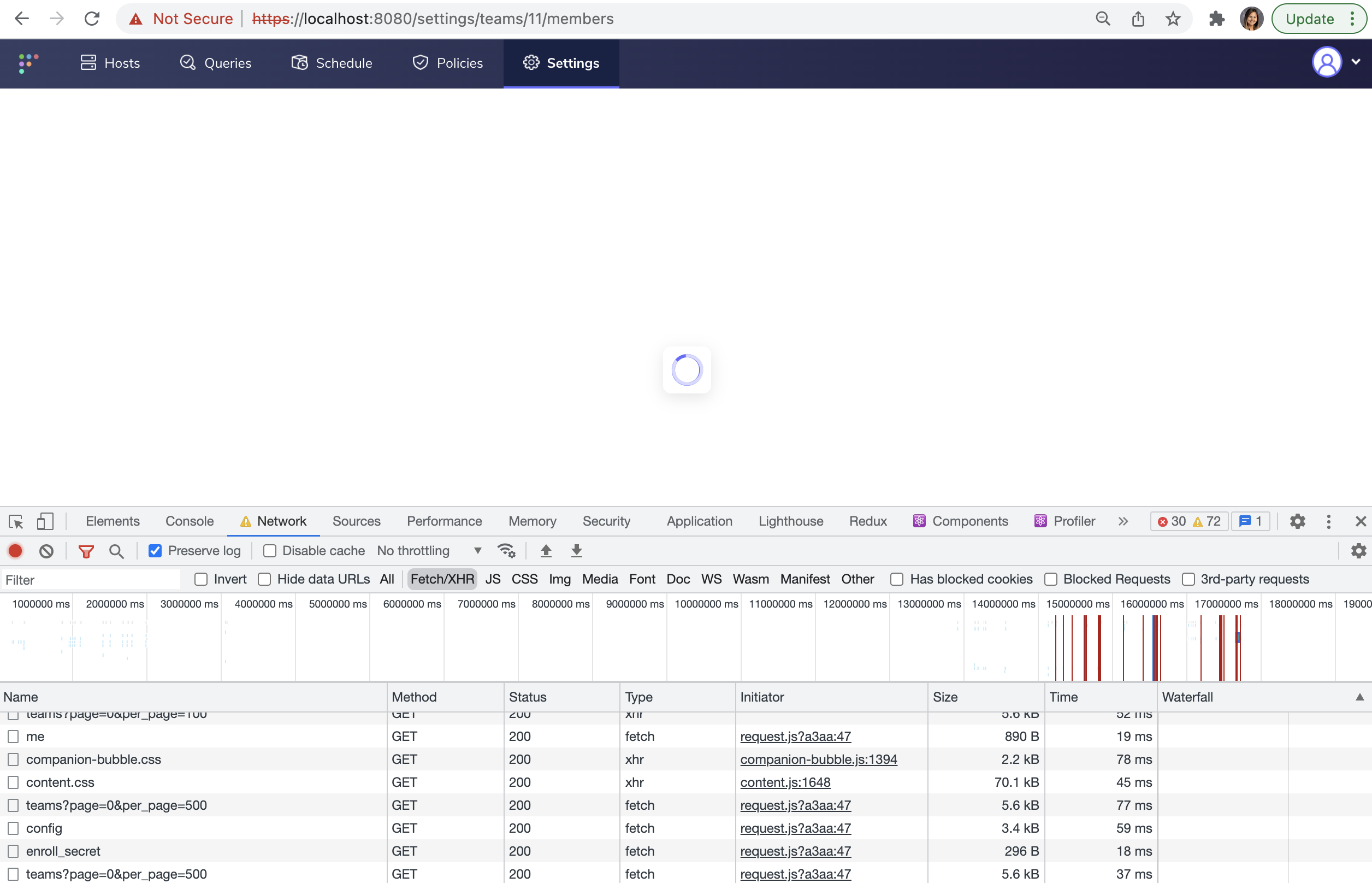 - Team members page: Tries to load forever, never leaves the loading state