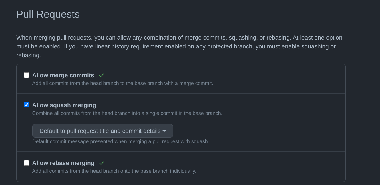 squashstrategyautomatically set commit message to PR title and commit description to commit list