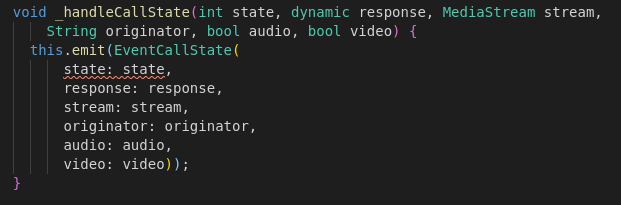 The EventManager in this PR takes one argument derived from EventType, that argument is a class which can be used to pass any number of arguments. I've defined many of these, one for each eventType, for example EventCallState which currently allows passing of 6 fully typed values, and can easily be modified to pass an un-limited number of fully typed values including Functions if required. Given the flexibility of this model it should be able to handle any future requirements. example emit: example on: The code in this PR implements Static typing and immediately reveals problematic paths of this nature without ever needing to run the code! Thus removing all of these types of problems. |