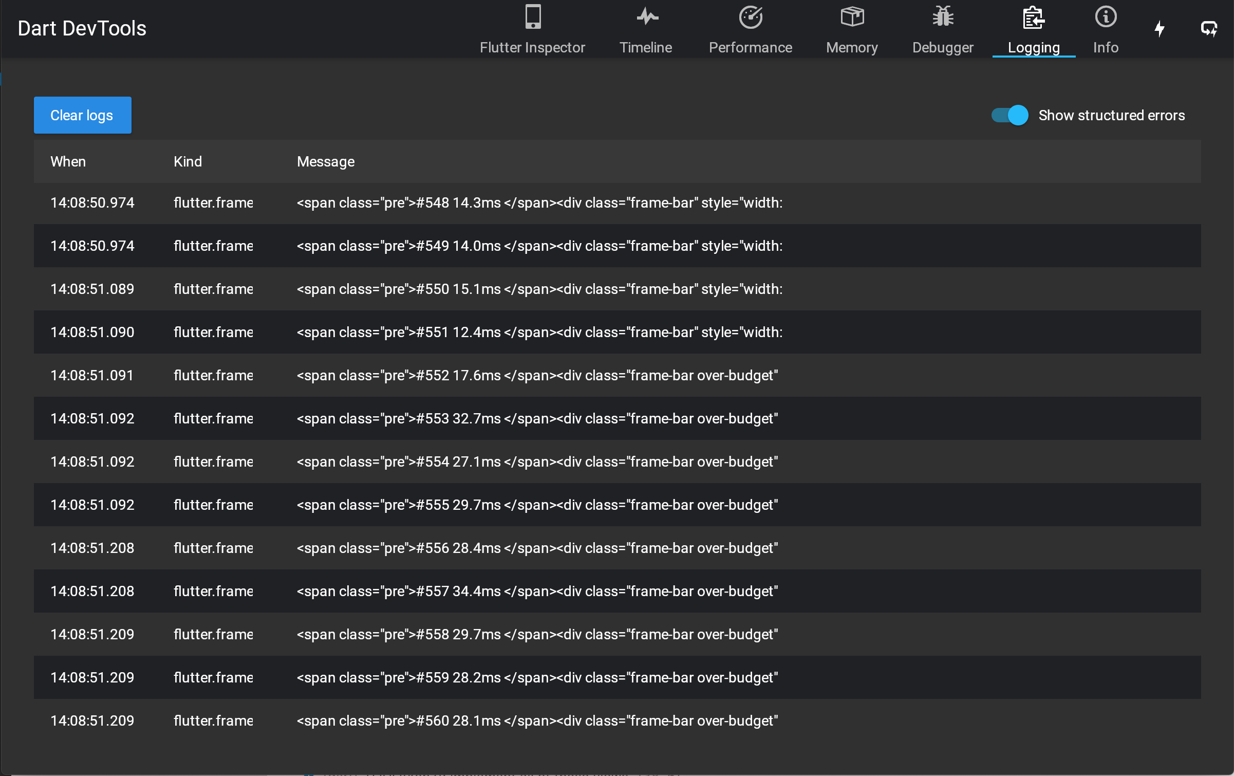 do we not think expandable table children are practical? showing a separate details view in the existing logging page was more for expediency than by design. I'd hope we can do better in Flutter and actually show the details inline.