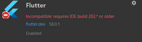 Plugin 'Flutter' (version '58.0.1') is not compatible with the current version of the IDE, because it requires build 202.* or older but the current build is AI-203.7717.56