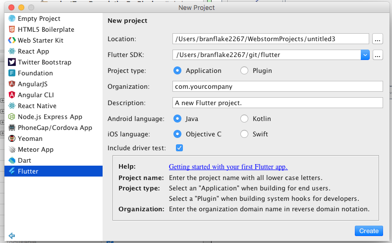 WebStorm only has one step and IDEA has two steps in the project create wizards. It looks possible to add wizard steps to Webstorm, so I would suggest keeping the wizards consistent with IDEA. Then this would mean the flutter SDK selection would have to be extracted into it's own wizard. What are your thoughts on keeping Webstorms and IDEAs steps similar? |
