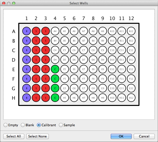 This module provides a simple dialog that allows the user to configure a well plate by specifying a "type" for each well. The default types are: