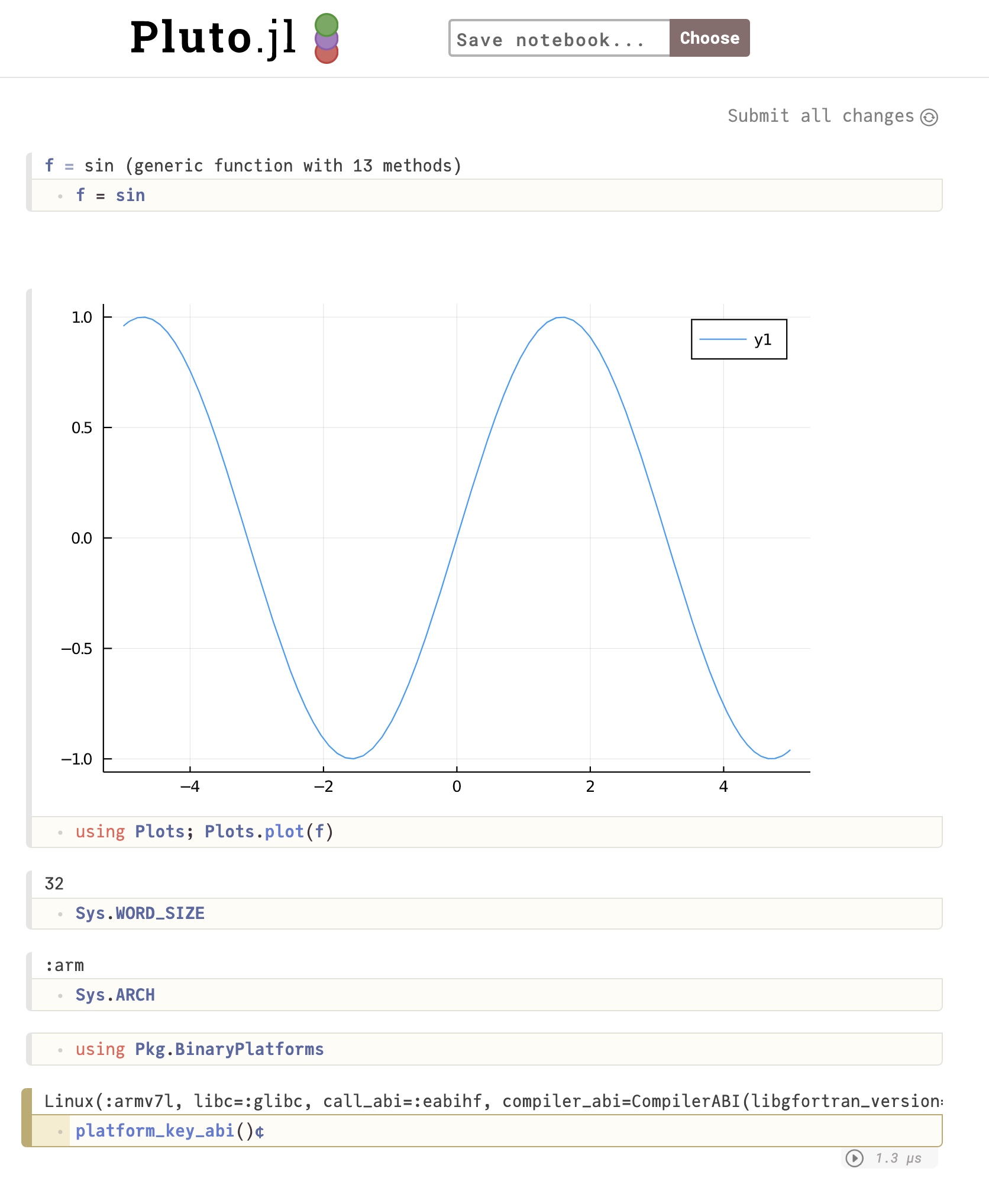 Int32. Therefore if one defines function which accepts onlyInt64(notInt), we will getMethodError: no method matching f(::Int32). Here is my log that shows what happens.julia _ _ _ _(_)_ | Documentation: https://docs.julialang.org (_) | (_) (_) | _ _ _| |_ __ _ | Type "?" for help, "]?" for Pkg help. | | | | | | |/ _` | | | | |_| | | | (_| | | Version 1.5.3 (2020-11-09) _/ |\__'_|_|_|\__'_| | |__/ | julia> versioninfo() Julia Version 1.5.3 Commit 788b2c7* (2020-11-09 13:37 UTC) Platform Info: OS: Linux (arm-linux-gnueabihf) CPU: ARMv7 Processor rev 3 (v7l) WORD_SIZE: 32 LIBM: libopenlibm LLVM: libLLVM-9.0.1 (ORCJIT, cortex-a72) julia> Sys.WORD_SIZE 32 julia> 1 |> typeof Int32 julia> f(x::Int64) = 2x f (generic function with 1 method) julia> f(1) ERROR: MethodError: no method matching f(::Int32) Closest candidates are: f(::Int64) at REPL[4]:1 Stacktrace: [1] top-level scope at REPL[5]:1 julia> f(x::Int) = 2x f (generic function with 2 methods) julia> f(1) 2If this PR is merged, Pluto.jl can support many devices 👍 . Below image is our future.