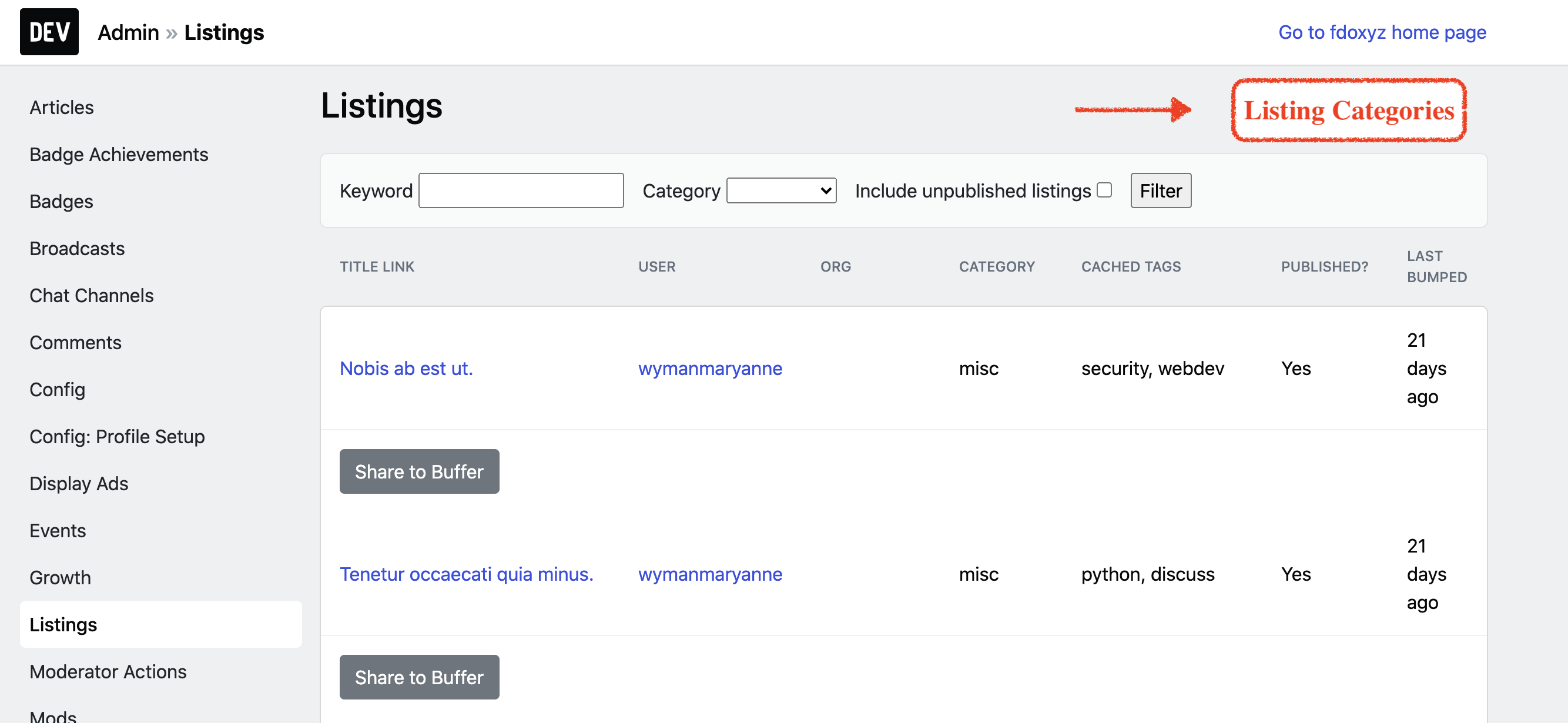 /admin) currently has a Listings section that allows administrators to manage them but we are lacking a way to manage Listing Categories.Describe the solution you'd like