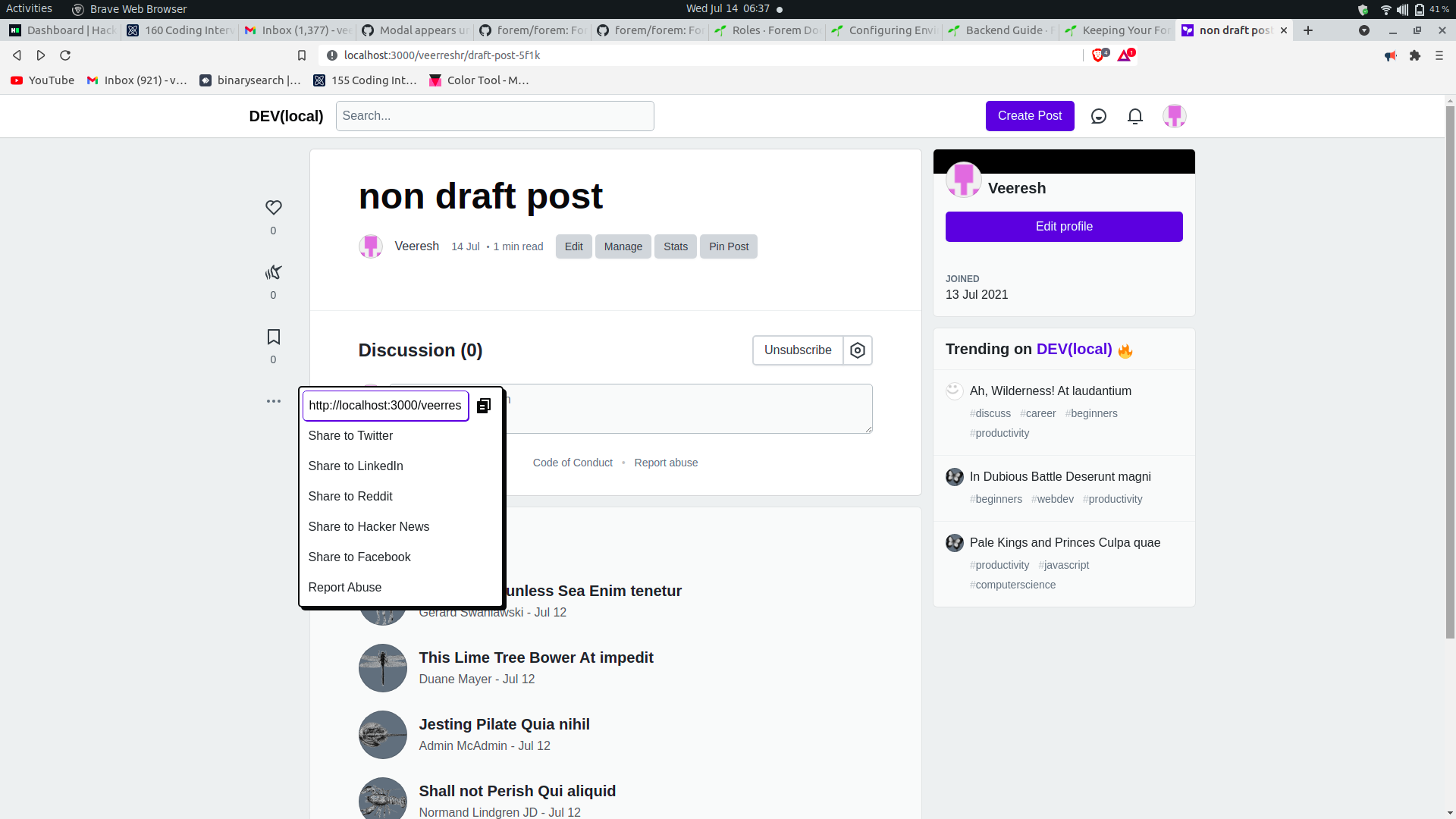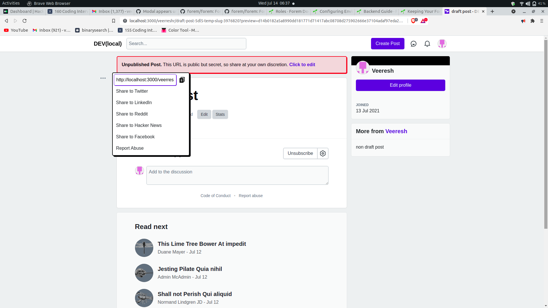 thanks @jgaskins , Now I am able to set it up and running. Now I am left with few more douts? should I implement the feature so it only effects the draft page. What I mean is, the dropdown is common for both draft articles and non draft articles, so if I change the dropdown layout, it will change for both draft and non draft articles. Should I change it only for draft pages(can be achieved with a small tweak)? or for both? This is how it looks when changes are applied to both draft and non draft articles Should I proceed to apply changes for both the pages? or just for draft page? and sorry if I am asking too many questions 😅. |