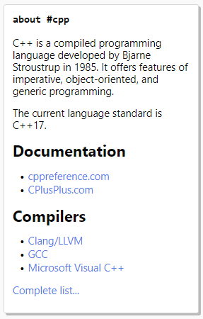 For example, this is the Markdown for the #cpp tag...