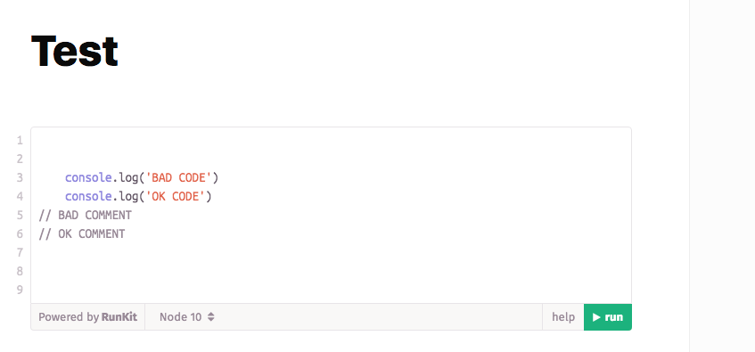 https://dev.to/tomaszrydzewski/runkit-indentation-2n9c-temp-slug-526549?preview=b14fe31c6205719176ea1eb56003f5a280d576a6c6e235a8587e6669eef1c45774687968a6bb6b677f09c7fc6a84289a59ceeb548b7d896fe1e94793