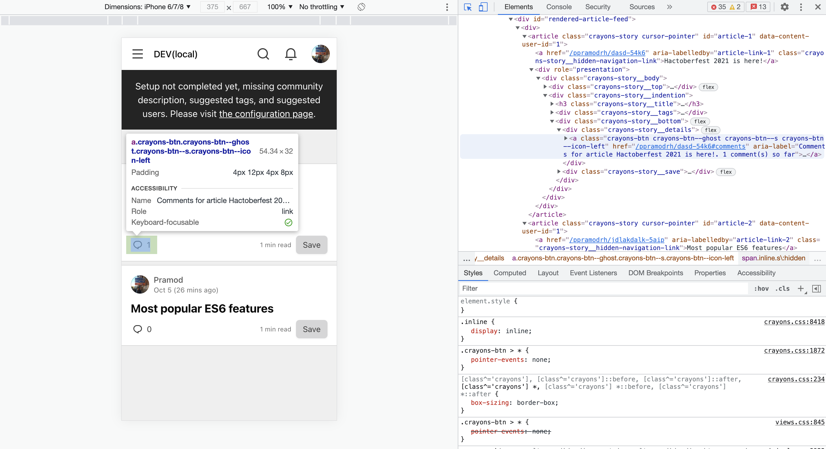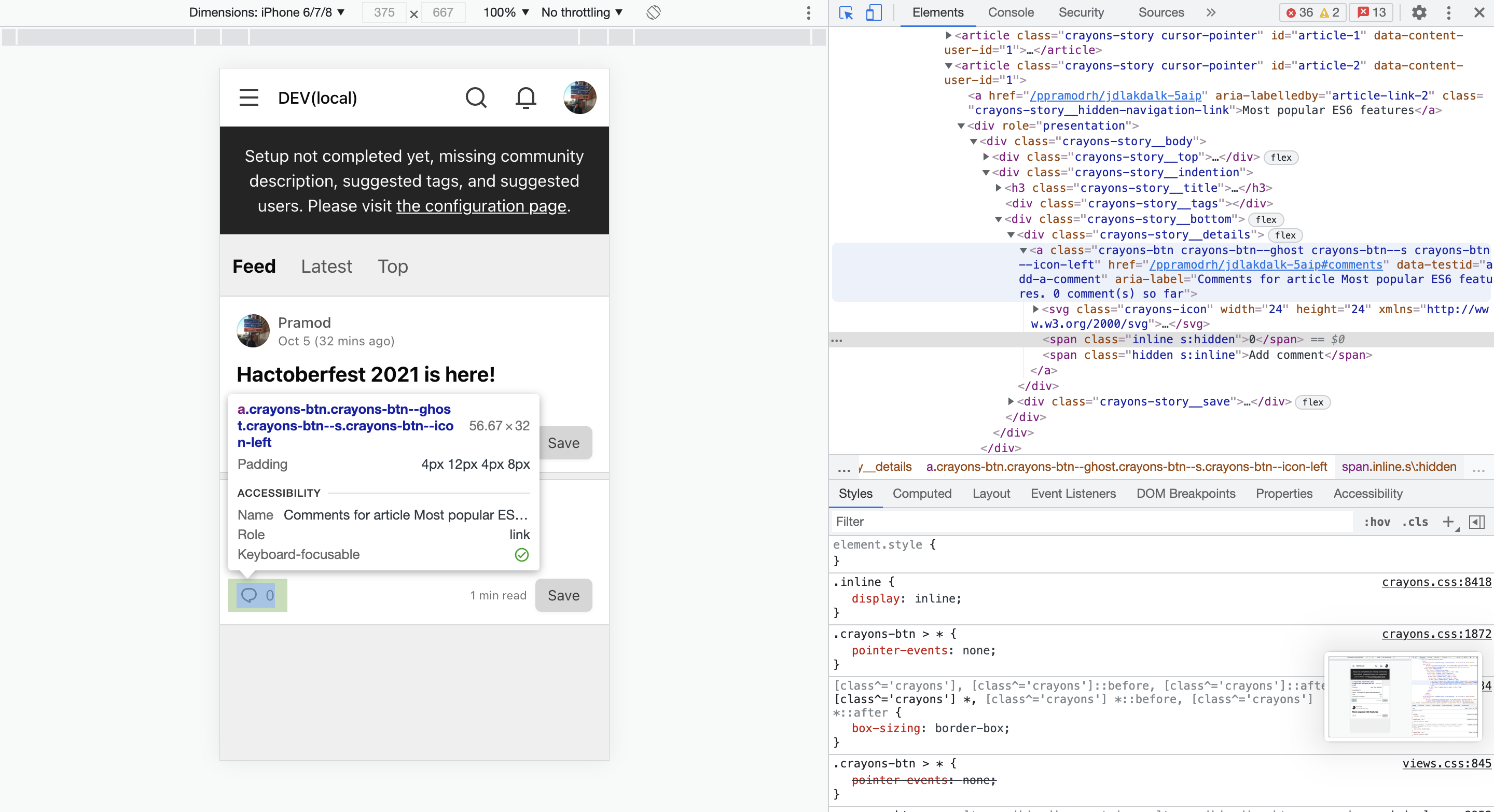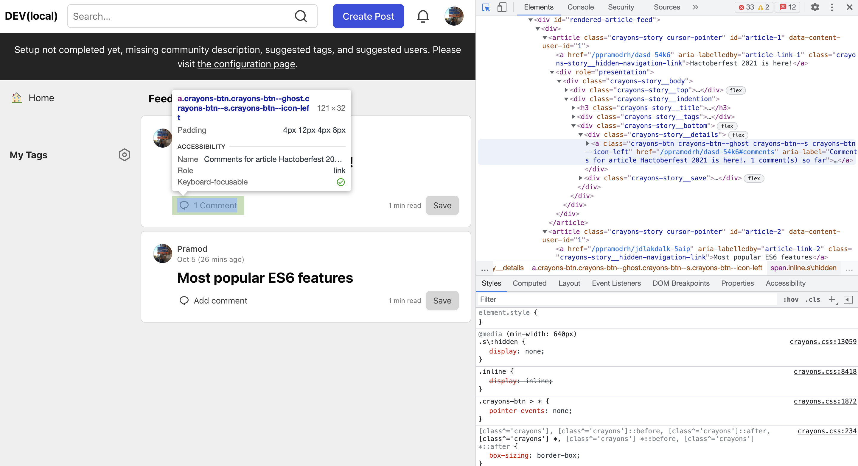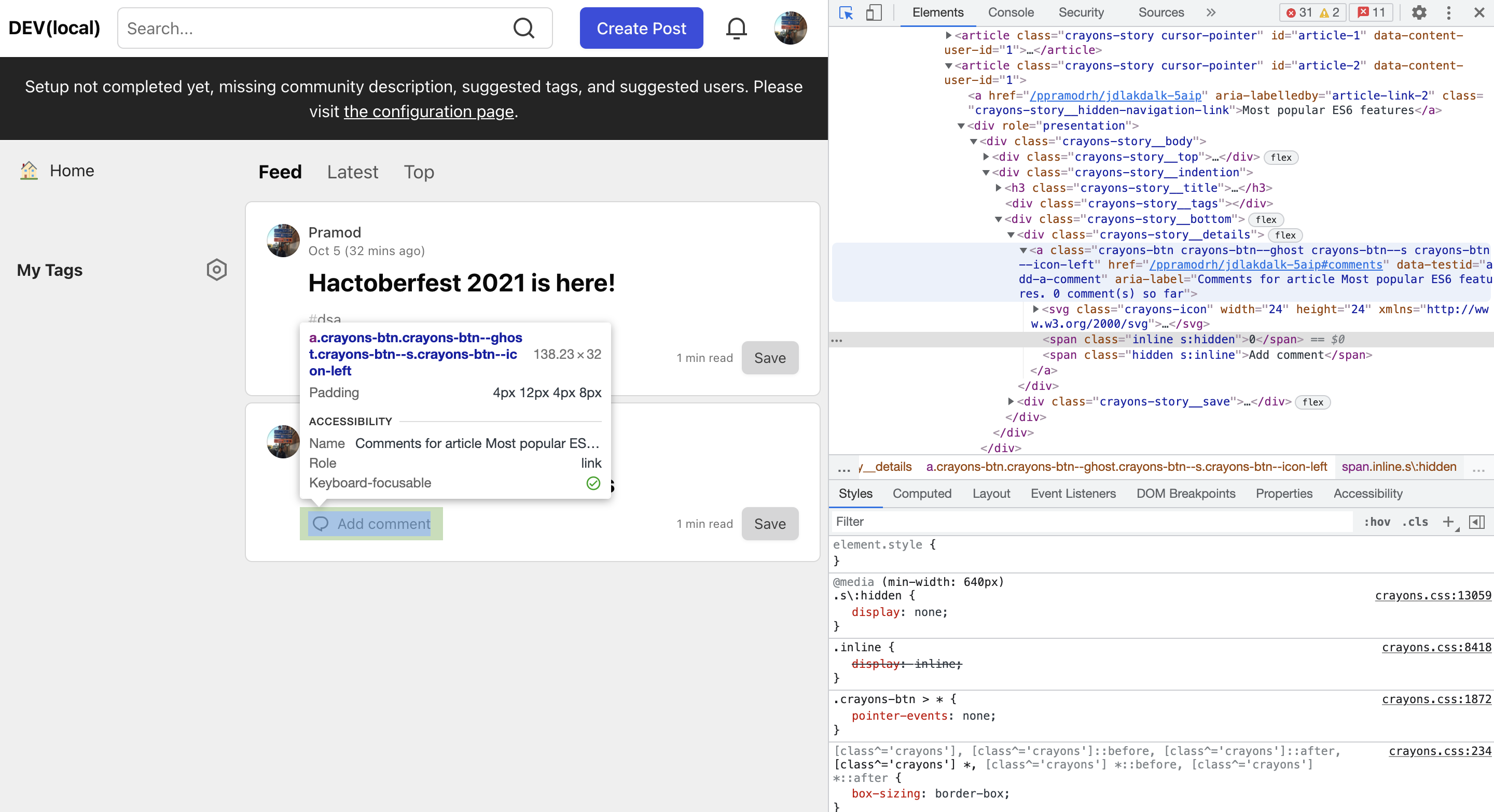 This is looking good! The only issue is that the Preact component is only used for the logged in home feed, so the new changes aren't currently impacting the logged out feed, paged in articles or search results for posts.