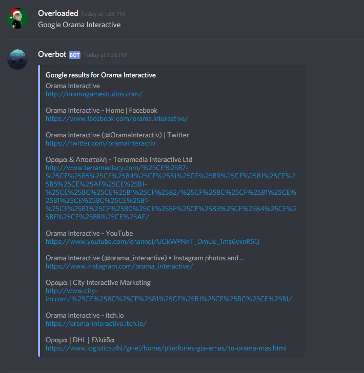 A Discord bot that scrapes data from Google searches. It uses the parameters (the rest of the message besides "google" at the start of it) and pastes them to Google's URL